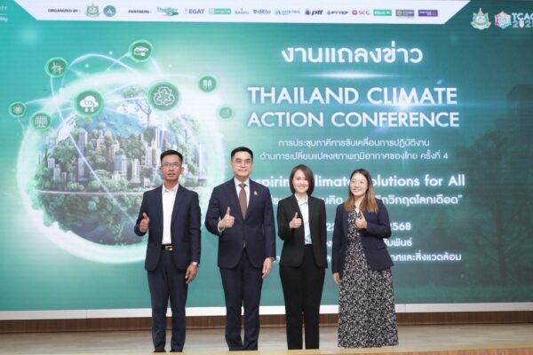 วันจันทร์ที่ 22 กันยายน 2568 กระทรวงทรัพยากรธรรมชาติและสิ่งแวดล้อม และภาคีเครือข่าย แถลงข่าวการจัดประชุมภาคีการขับเคลื่อนการปฏิบัติงานด้านการเปลี่ยนแปลงสภาพภูมิอากาศของไทย ครั้งที่ 4 หรือ Thailand Climate Action Conference: TCAC 2025 ภายใต้แนวคิด “จุดประกายความคิด ร่วมพลิกวิกฤตโลกเดือด (Inspiring Climate Solutions for All)” โดยได้รับเกียรติจาก ดร.พิรุณ สัยยะสิทธิ์พานิช อธิบดีกรมการเปลี่ยนแปลงสภาพภูมิอากาศและสิ่งแวดล้อม ประธานแถลงข่าว ร่วมกับ ดร.นภัส พันธ์พงษ์เจริญ กรรมการผู้จัดการ บริษัทซัสเทนอะบิลิตี้ เอ็กซ์โป จำกัด ดร.บุญทวี บุญให้ ผู้อำนวยการโรงเรียนสาธิตเทศบาลบ้านหัวหิน จังหวัดประจวบคีรีขันธ์ และคุณกานต์รวี ศรีแสงทรัพย์ แกนนำเยาวชน โครงการ Local Conference of Youth (LCOY) Thailand ณ อาคารกรมการเปลี่ยนแปลงสภาพภูมิอากาศและสิ่งแวดล้อม กรุงเทพฯ