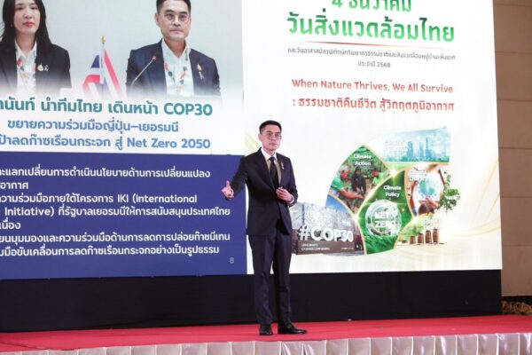 ด้าน ดร. พิรุณ สัยยะสิทธิ์พานิช อธิบดีกรมการเปลี่ยนแปลงสภาพภูมิอากาศและสิ่งแวดล้อม ได้กล่าวว่า สำหรับกิจกรรมวันนี้ ประกอบด้วย การจัดแสดงนิทรรศการ ภายใต้แนวคิด “When Nature Thrives, We All Survive: ธรรมชาติคืนชีวิต สู้วิกฤตภูมิอากาศ” พิธีมอบถ้วยพระราชทาน และรางวัลเชิดชูเกียรติด้านสิ่งแวดล้อม พิธีลงนามบันทึกความเข้าใจความร่วมมือด้านการสนับสนุนเชิงธุรกิจและการตลาดให้กับผู้ประกอบการ G-Green และสถาบันการเงิน จำนวน 9 แห่ง พร้อมเปิดเวทีนำเสนอในหัวข้อ “รวมพลังเครือข่าย สู้วิกฤตภูมิอากาศ สู่สังคมคาร์บอนต่ำ” การเสวนา “5 ประเด็นที่โลกจับตาใน COP 30 สู่การขับเคลื่อนในประเทศไทย” และนำเสนอสรุปผลการประชุม COP 30 “Belém Political Package” ประกอบด้วยผลลัพธ์ 16 ประเด็น อาทิ การเปลี่ยนผ่านที่เป็นธรรมทั้งด้านลดก๊าซและปรับตัว กองทุนภูมิอากาศสีเขียว ตัวชี้วัด Global Goal on Adaptation (GGA) การลดก๊าซเรือนกระจก เป็นต้น โดยกรมการเปลี่ยนแปลงสภาพภูมิอากาศและสิ่งแวดล้อม ได้มุ่งเน้นสร้างความตระหนักรู้และส่งเสริมการมีส่วนร่วมในการอนุรักษ์ ฟื้นฟู และใช้ประโยชน์จากทรัพยากรธรรมชาติอย่างยั่งยืน โดยการแลกเปลี่ยนความคิดเห็นของทั้งภาครัฐ ภาคเอกชน ภาคประชาสังคม จะนำไปสู่การบูรณาการสู่ระดับพื้นที่ โดยมีเครือข่าย ทสม. เป็นหัวใจสำคัญ ในการขับเคลื่อนการดำเนินงาน สื่อสาร และสร้างความเข้าใจกับประชาชนในวงกว้างและเกิดประสิทธิผลได้ในระยะยาว